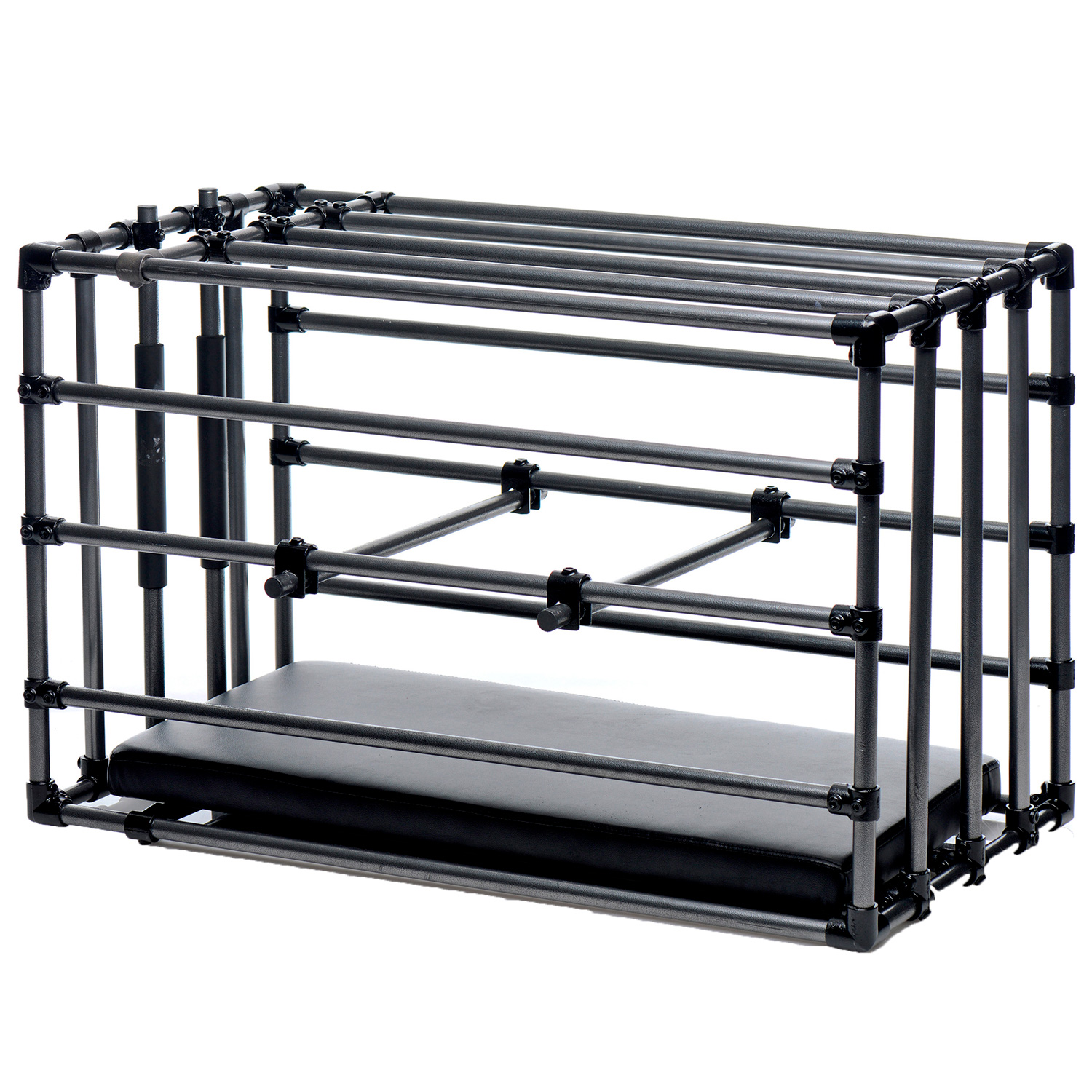 Tag dine dominante BDSM lege til et nyt niveau med Master Series Slave Bur. Det justerbare bur er let at indstille, så du kan placere din submissive i netop den stilling, du ønsker. Når stængerne først er fæstnet, slipper ingen ud, før de har gjort sig fortjent til det. Lad eksempelvis buret omslutte kroppen, mens hoved eller bagdel er frit tilgængeligt uden for. Det er kun dine kinky fantasier, der sætter grænsen. Bestem selv, om din ulydige slave har gjort sig fortjent til den polstrede bund, alt imens du pirrer, tirrer eller nyder til eget behov. Med slave buret er det dig, der har den fulde kontrol. Master Series slave Bur er udført i sort stabilt stål. Det måler 112 cm i længden, 57 cm i bredden og 72 cm i højden.